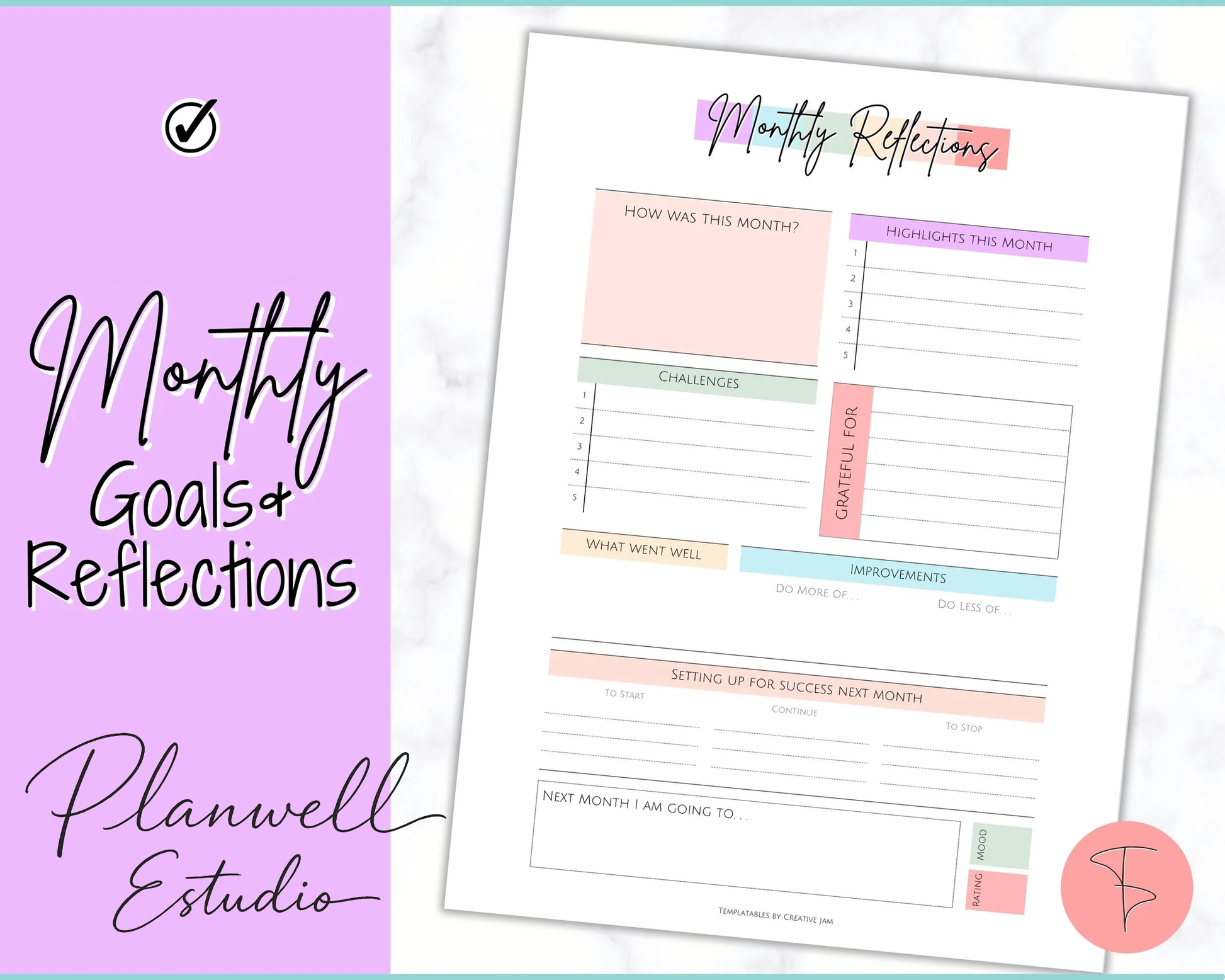 Monthly Goals & Reflections Printables | 3 Different formats